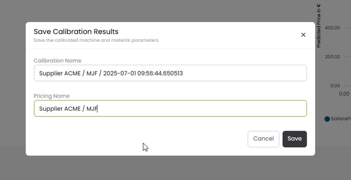 • When the calibration results appear, click Save Results and give the pricing model a clear name.