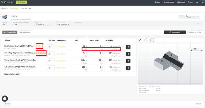 Benchmark: I want to compare my “main” production option with this “benchmark” production option in terms of cost, lead time and carbon footprint.