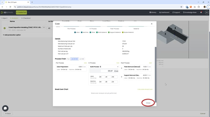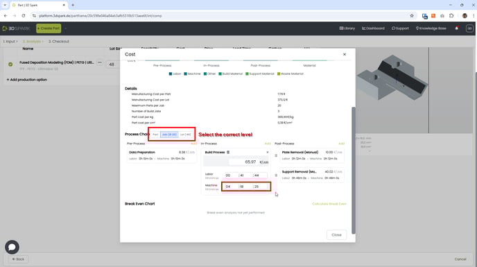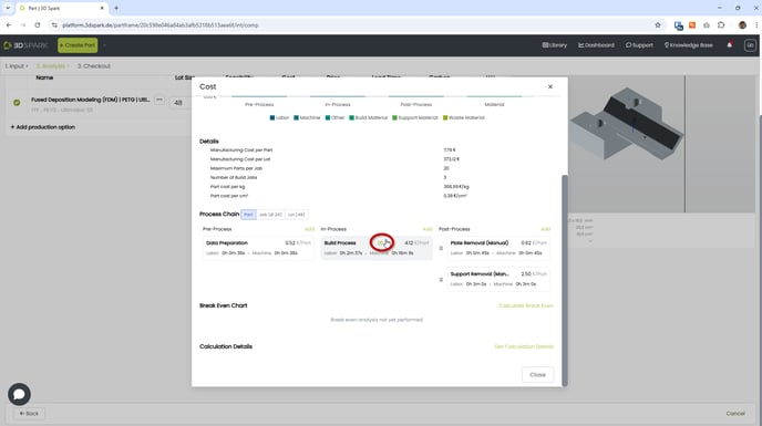 • If 3D Spark's build time estimation is not precise enough i.e. if the machines were not calibrated and the build time is calculated by the slicer.