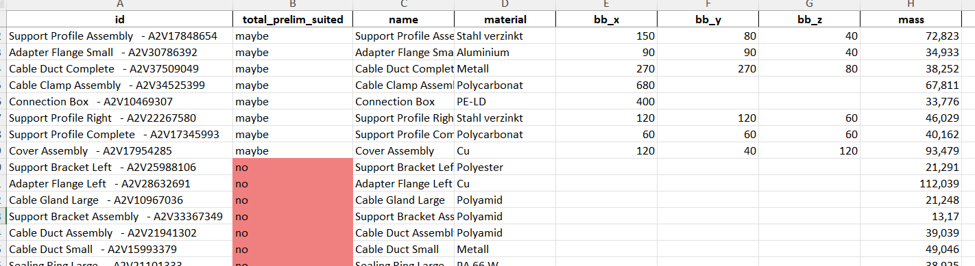 3D Spark can pre-filter your ERP data for suitability of parts for additive manufacturing. Too large parts, for example, do not need additional analysis and they are filtered out. This approach might save significant resources in large Part Screening projects.